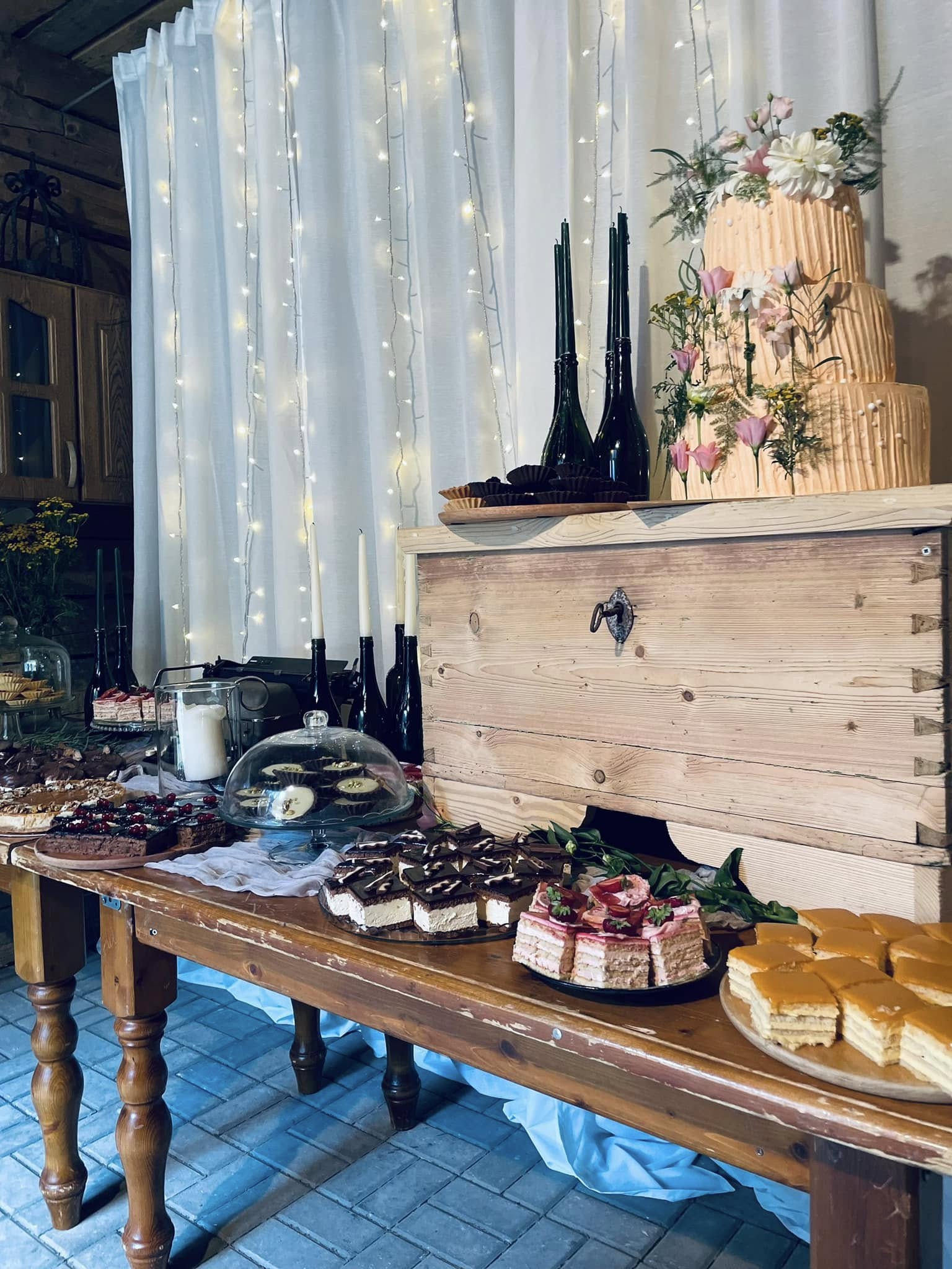 Candy bar je sladký kútik plný koláčikov od výmyslu sveta. Pri tomto stolíku si pohladíte oči aj bruško. Jeho neodmysliteľnou súčasťou sú živé kvety, svetielka, sviečky či štýlové pop up printy. Koláčiky vám vieme priviezť na miesto oslavy, svadby či záhradnej párty., prípadne sladký stolík celý nainštalujeme. V ponuke máme 3 druhy stojanov (kov, bridlica a drevo), vďaka čomu sa vieme dokonale prispôsobiť prostrediu Vašej udalosti.